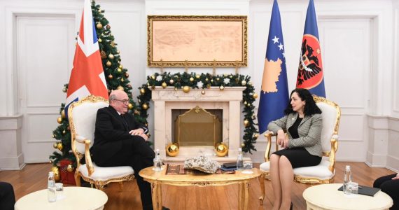 Presidentja e Republikës së Kosovës, Vjosa Osmani ka pritur në takim të dërguarin e posaçëm të Mbretërisë së Bashkuar për Ballkanin Perëndimor, Lordin Stuart Peach, të cilin e ka uruar për emërimin në Dhomën e Lordëve. Në takim me Lordin Peach, Osmani ka theksuar se institucionet e Republikës së Kosovës janë të përkushtuara dhe të … Continue reading Osmani takohet me Peach: Në veri ligji po sfidohen nga bandat kriminale serbe të cilat janë në listën e zezë të ShBA-së dhe Britanisë