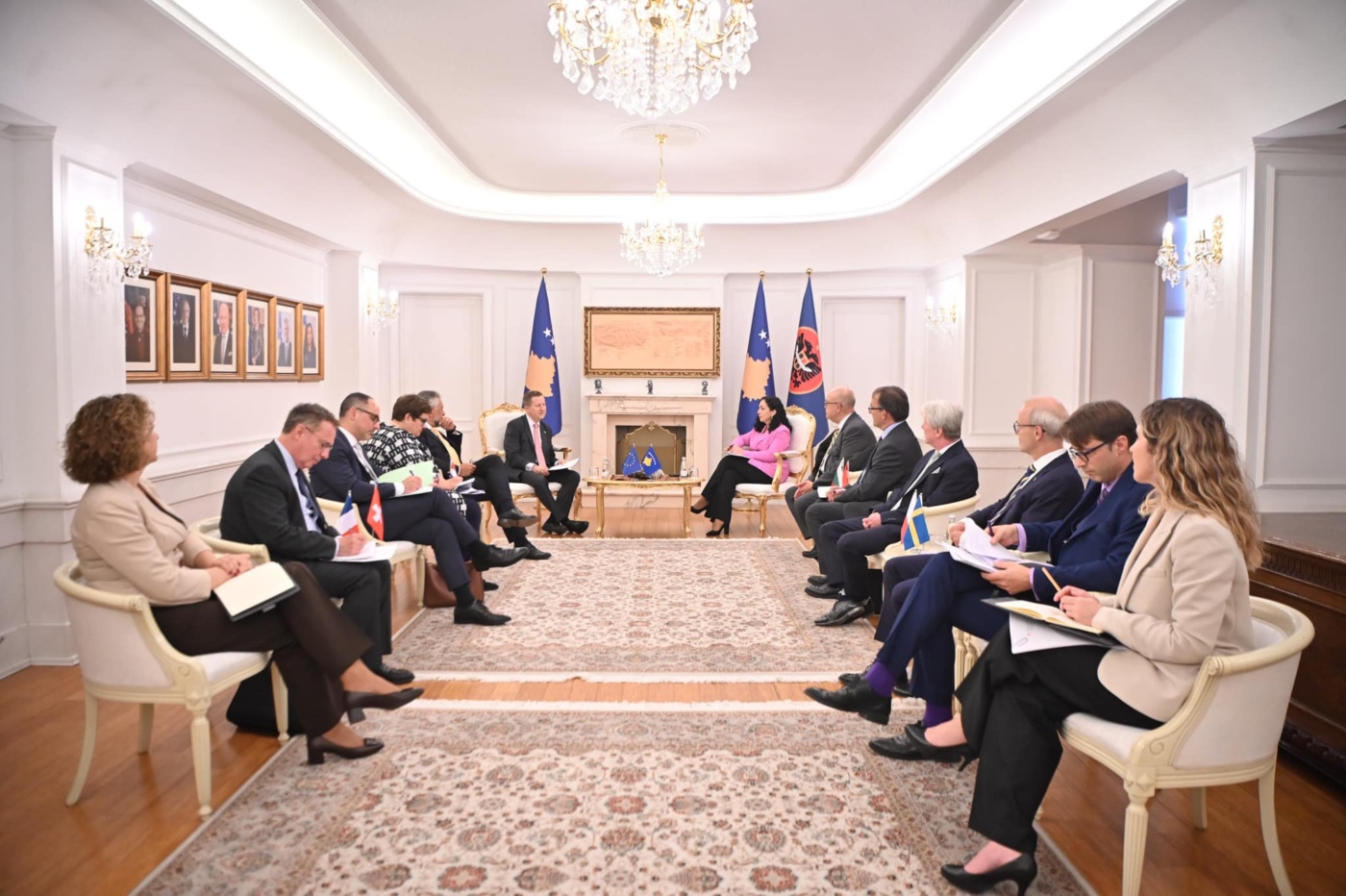 Presidentja e Republikës së Kosovës, Vjosa Osmani ka pritur sot në takim ambasadorë të disa shteteve evropiane si dhe atë të EULEX-it, në krye me Ambasadorin e BE-së Thomas Szunyog, për të diskutuar koordinimin e agjendës ndërkombëtare, si dhe bashkërendimin me politikat e BE-së dhe me shtetet e tjera aleate për çështje të politikës së jashtme dhe sigurisë.