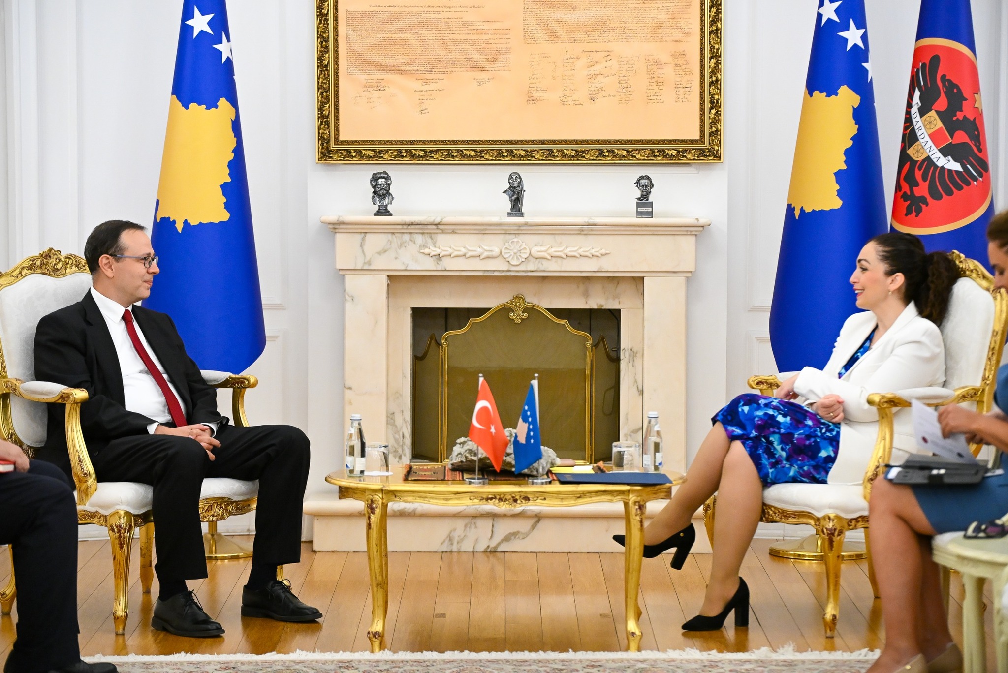 Presidentja e Kosovës, Vjosa Osmani, ka pritur ambasadorin e Turqisë në Kosovë, Sabri Tunç Angılı, me të cilin siç thuhet ka biseduar për forcimin e bashkëpunimit bilateral, veçanërisht në fushën e ekonomisë dhe mbrojtjes.