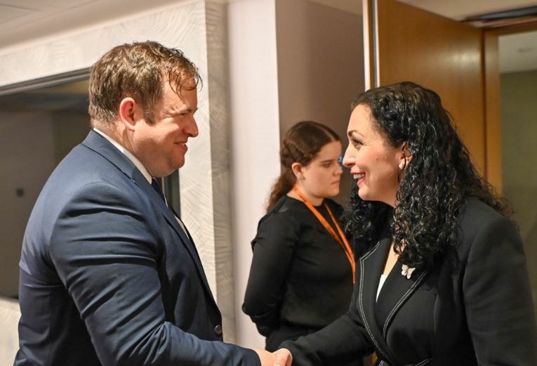 Presidentja e Republikës së Kosovës, Vjosa Osmani u takua me ministrin e ri britanik për Evropën, Stephen Doughty, në Pragë.