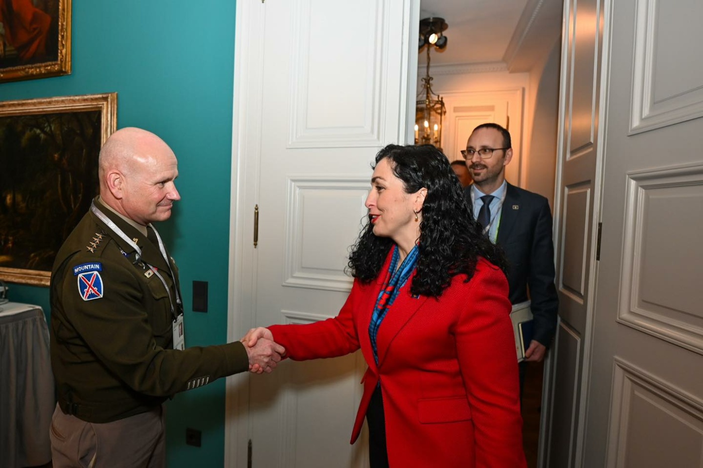 Presidentja e Republikës së Kosovës, Vjosa Osmani në Konferencën e Sigurisë në Mynih, është takuar me Komandantin Suprem të Forcave Aleate për Evropë (SACEUR) në NATO, Gjeneralin Christopher Cavoli.