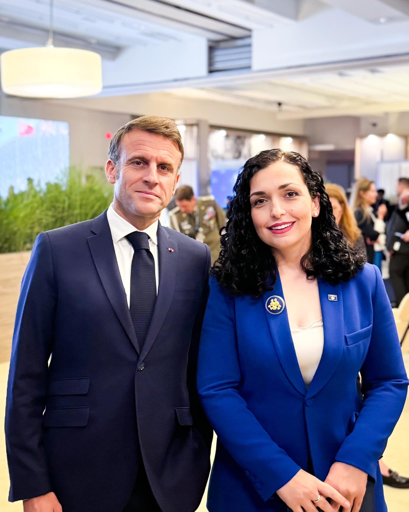 “Diskutim përmbajtësor me Presidentin Macron në Samitin e NATO-s në Washington D.C lidhur me të ardhmen euroatlantike të Kosovës, reformat në fushën e sundimit të ligjit dhe forcimin e marrëdhënieve bilaterale ndërmjet Kosovës dhe Francës”, shkroi Osmani në Facebook./Arbresh.info/