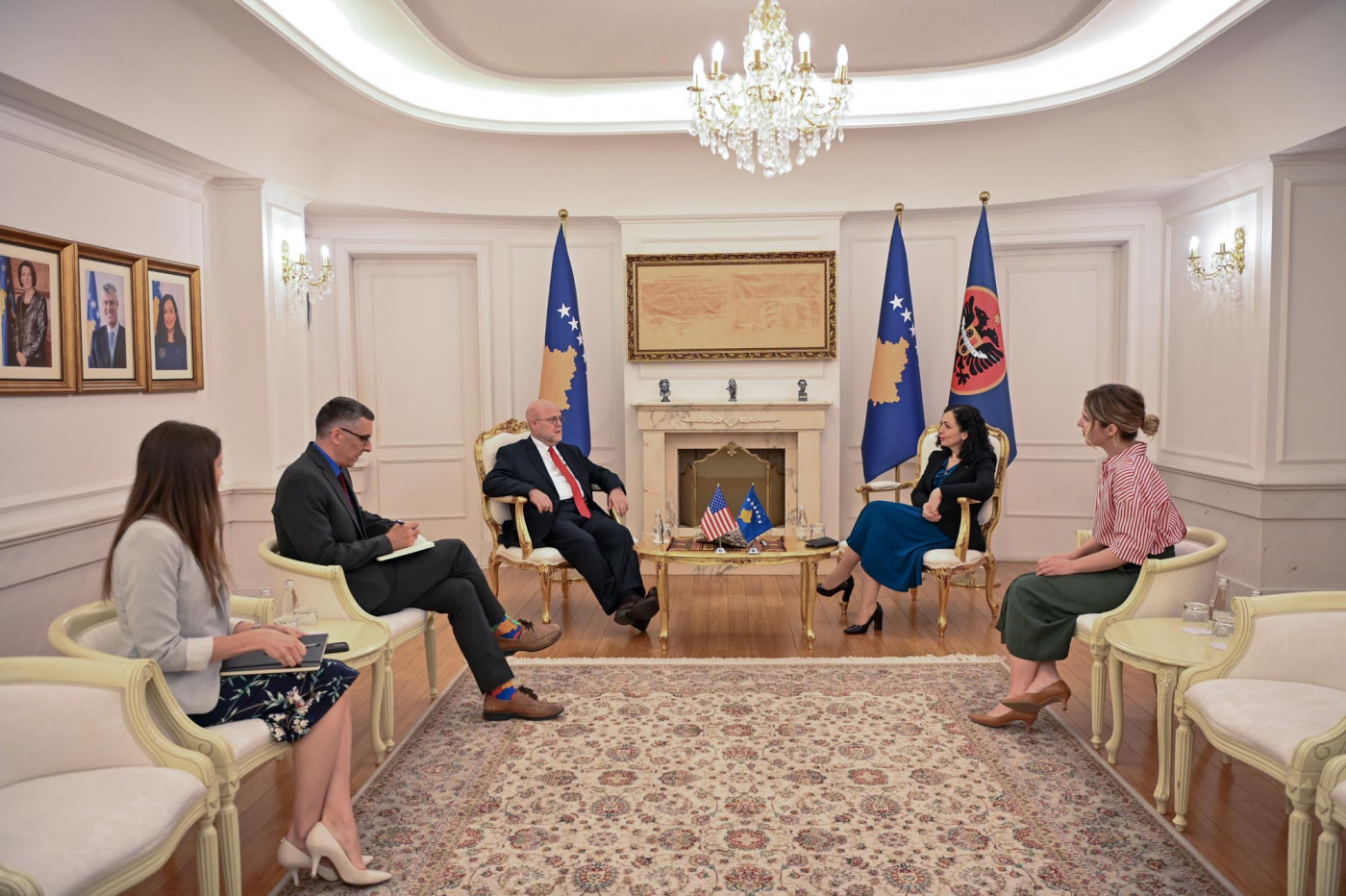 “Në takim u diskutua edhe për hapat e mëtejmë për shtensionimin e situatës dhe nevojën e bashkërendimit me partnerët, duke e ditur që si institucionet tona ashtu edhe SHBA ndajnë të njëjtin qëllim për një Kosovë të integruar në strukturat euroatlantike e me sovranitet dhe integritet territorial të pacenueshëm”, thuhet në njoftimin e presidencës.
