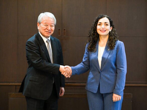 Presidentja e Republikës së Kosovës, Vjosa Osmani, gjatë vizitës së saj zyrtare në Japoni, është takuar me Kryetarin e Agjencisë Japoneze për Bashkëpunim Ndërkombëtar (JICA), Tanaka Akihiko.