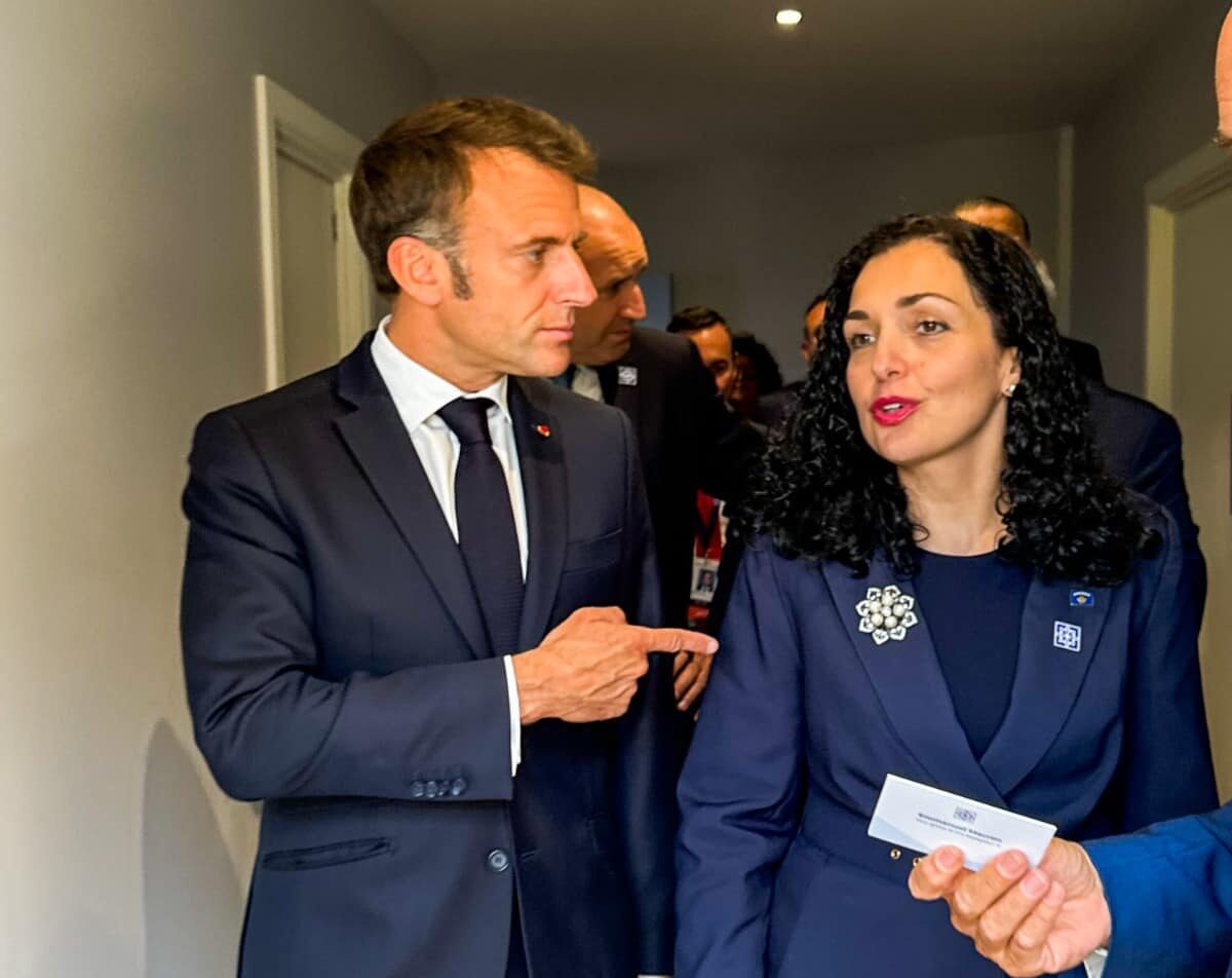 Presidentja e Republikës së Kosovës, Vjosa Osmani, e cila po qëndron në Mbretërinë e Bashkuar, ku po e përfaqëson Republikën e Kosovës në samitin e katërt të Komunitetit Politik Evropian (EPC), është takuar me Presidentin e Francës, Emmanuel Macron.