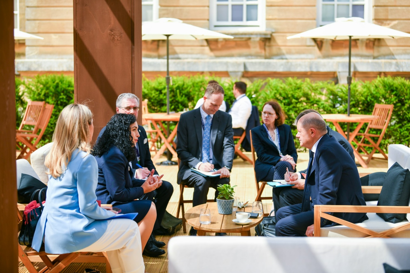 Presidentja e Kosovës, Vjosa Osmani është takuar të enjten me kancelarin gjerman, Olaf Scholz në kuadër të Samitit të Liderëve të EPC-së.