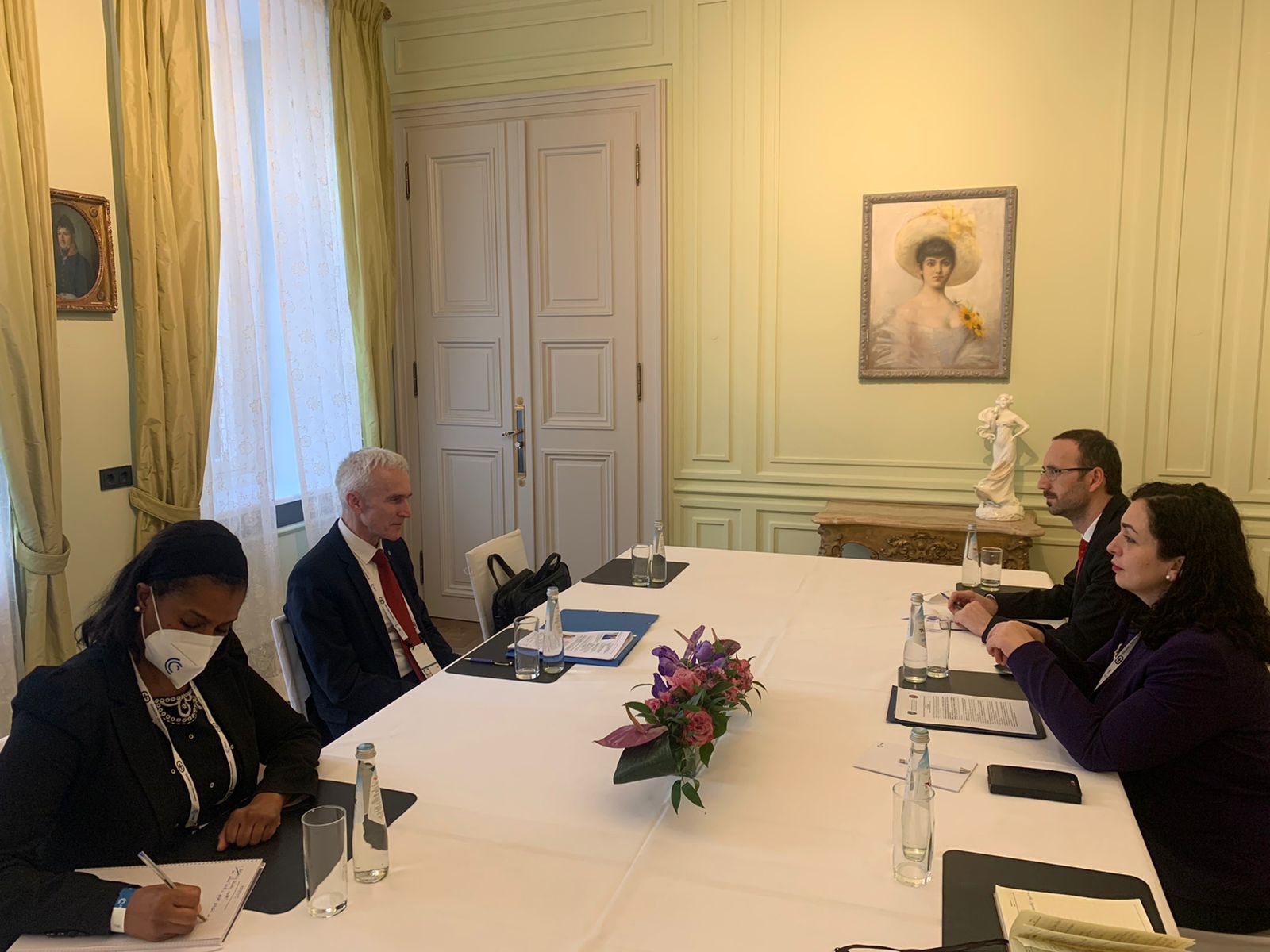 Presidentja Vjosa Osmani ka takuar në Mynih, sekretarin e INTERPOL, Jurgen Stock dhe drejtoreshën ekzekutive të EUROPOL, Catherine De Bolle.