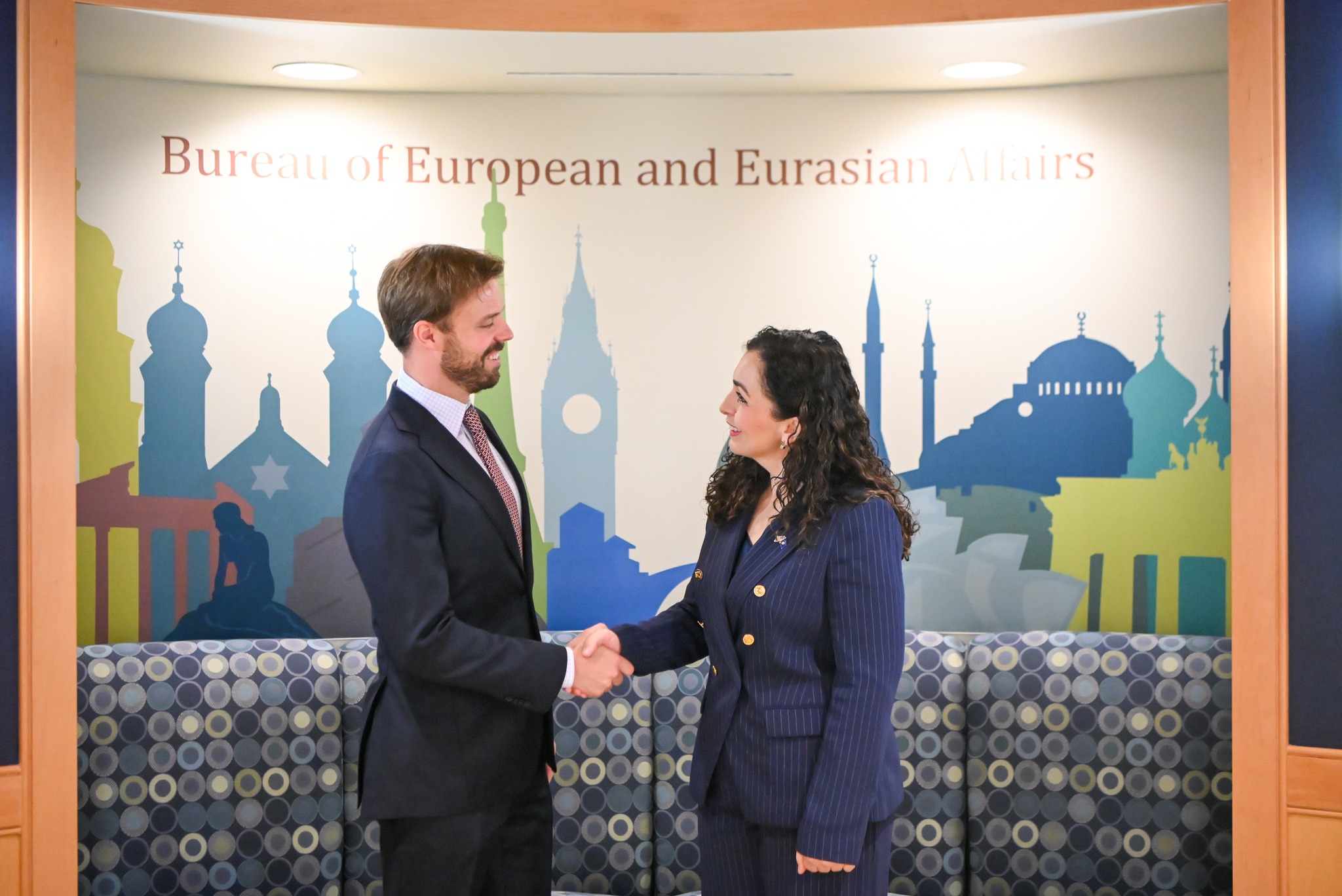 Presidentja e Republikës së Kosovës, Vjosa Osmani, ka zhvilluar sot një takim në Washington D.C. me Ndihmës Sekretarin e Shtetit në detyrë, Brendan Hanrahan.