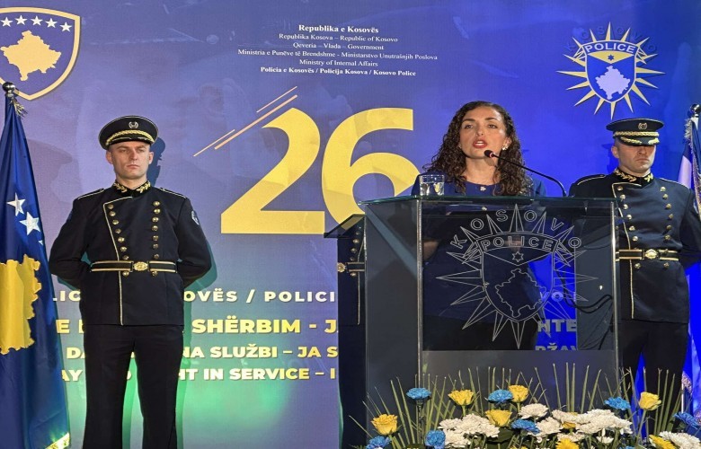 Në ceremoninë e 26-vjetorit të themelimit të Policisë së Kosovës, Presidentja e Republikës, Vjosa Osmani, ka vlerësuar lart rolin, guximin dhe përkushtimin e kësaj force që nga themelimi e deri më sot.
