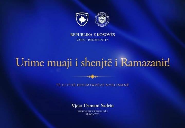 Presidentja e Kosovës, Vjosa Osmani, ka uruar besimtarët mysliman me rastin e fillimit të muajit të Ramazanit.