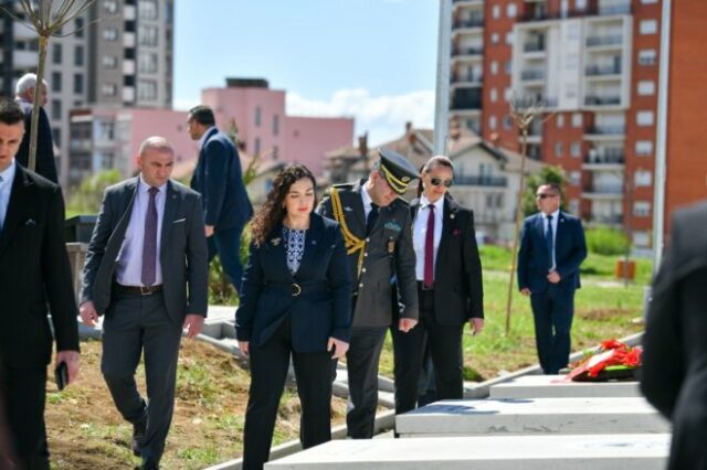 Presidentja e vendit, Vjosa Osmani në ditën e dëshmorëve të UÇK-së të komunës së Prishtinës, vendosi kurorë lulesh në nderim të dëshmorëve, në varrezat në Velani.