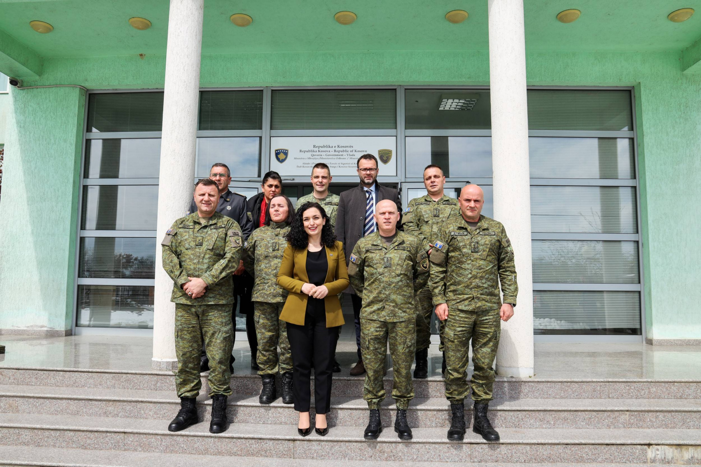 Me qëllim të informimit me përgatitjet finale për ekzekutimin e stërvitjes fushore” Defender-Europe’23”, Presidentja e Republikës së Kosovës, Vjosa Osmani, njëherësh Komandante Supreme, vizitoi Shtabin e Përgjithshëm të FSK-së në Kazermën” Adem Jashari” në Prishtinë, ku u prit nga Komandanti gjenerallejtënant Bashkim Jashari me gjeneralë dhe oficerë të FSK-së.