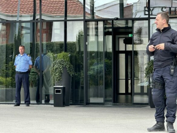 Protesta është duke u zhvilluar para hotelit Four Point by Sheraton në lagjen Marigona, aty edhe ku po qëndron Trendafilova.