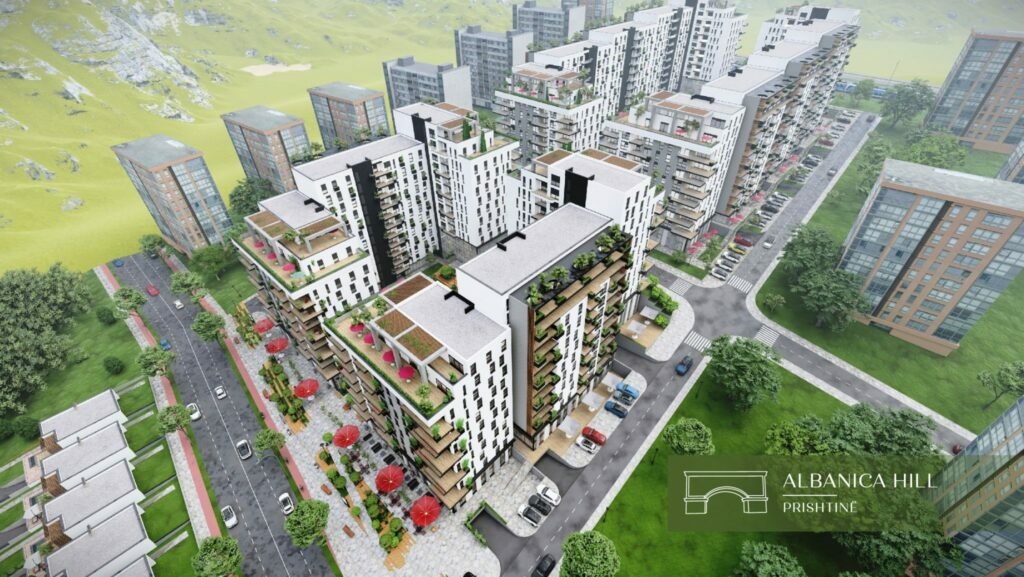 Albanica Hill, i shtrirë në pjesën lindore të Prishtinës së Re, në sipërfaqe prej më shumë se 112,000 m2.