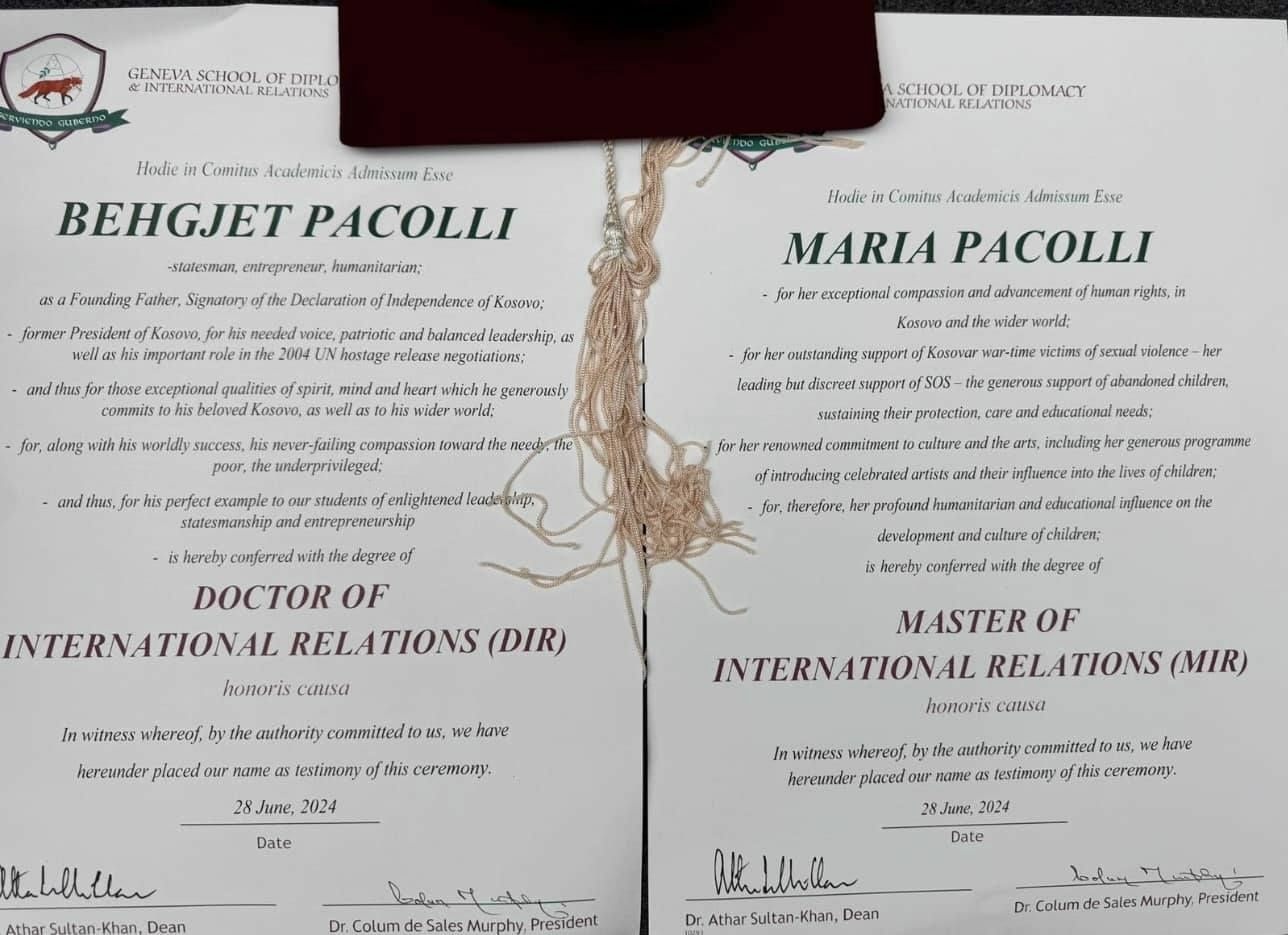 Ish-presidenti i Kosovës, Behgjet Pacolli është dekoruar me titullin “Doctor Honoris Causa” nga “Geneva School of Diplomacy and International Relations”.