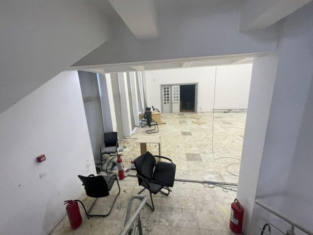 Salla e mbledhjeve duket qe eshte bosh, e braktisur. Pa tavoline dhe pa karrike.
