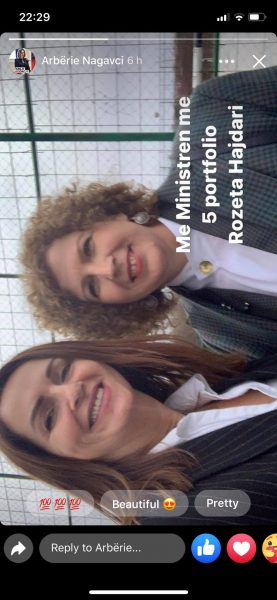 Anëtarja e Kryesisë së Lëvizjes Vetëvendosje, Arbërie Nagavci e ka publikuar një fotografi me bashkëpartiaken e saj, Rozeta Hajdari, ndërsa i është referuar asaj si “ministrja me 5 portofolio”.