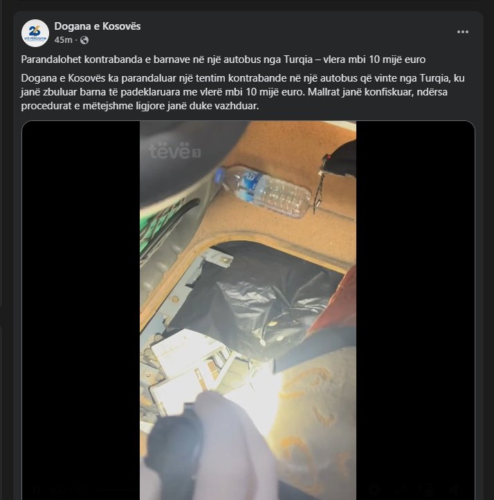 “Dogana e Kosovës ka parandaluar një tentim kontrabande në një autobus që vinte nga Turqia, ku janë zbuluar barna të padeklaruara me vlerë mbi 10 mijë euro. Mallrat janë konfiskuar, ndërsa procedurat e mëtejshme ligjore janë duke vazhduar”, thuhet në njoftim./Arbresh.info/