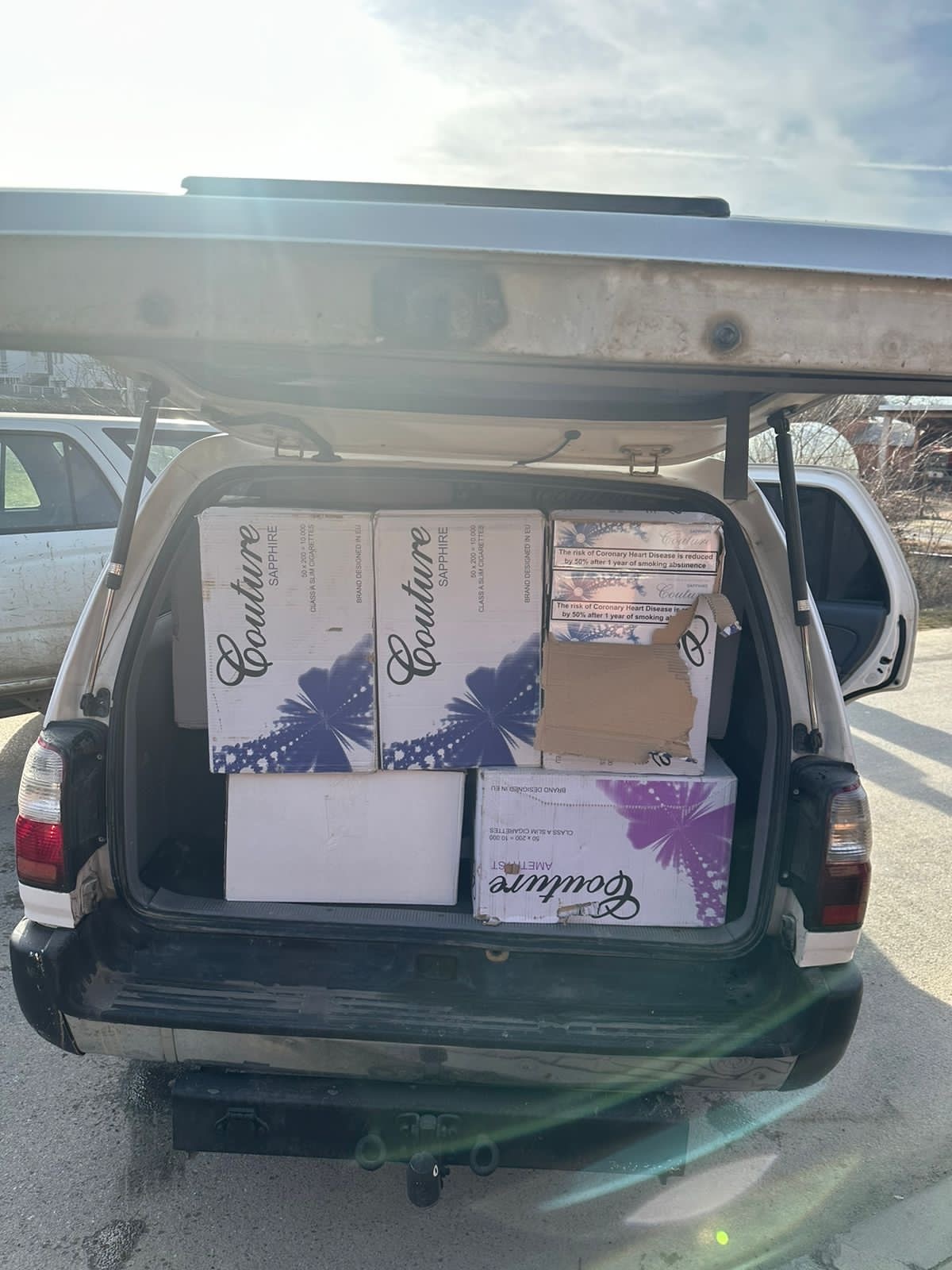 Policia bën të ditur se gjatë kontrollit të automjetit të dyshuar, të ngarkuar me mallra të kontrabanduara, janë hasur sasi prej 1299 paketime (boksa) të tri llojeve të ndryshme cigaresh, në sasi të përgjithshme rreth 260.000 cigare.