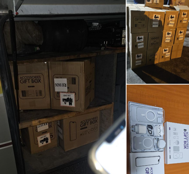 “Kontrollimi është kryer detajisht dhe është hasur në mall të fshehur në pjesën e krevatit dhe në pjesët e ndryshme të bagazhit të autobusit. Pas hapjes së pakove është zbuluar malli që kishte komplet për telefona i përbërë nga kufje, poëer bank, mbushës etj në sasi totale 500 komplete me vlerë mbi 6000 euro”, thuhet në njoftim.