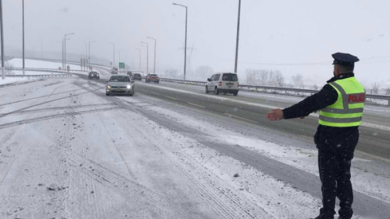 Nga Policia është bërë thirrje për kujdes të shtuar, përshtatje të shpejtësisë me kushtet atmosferike dhe me gjendjen e rrugës, mbajtje të distancës mes mjeteve si dhe ngadalësim gjatë lëvizjes në rrugë të mbuluara me borë dhe me ngrica.