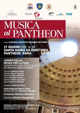 Ky koncert do të shfaqet në vendin më prestigjioz në Itali dhe në botë, në Pantheon, me orkestër të plotë prej 70, 7 solistë dhe kor të plotë, ku solistët dhe tenorët do të jenë për herë të parë nga Kosova dhe Shqipëria.
