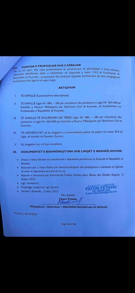 Këtë ligj e ka dërguar edhe në Kushtuese Lidhja Demokratike e Kosovës (LDK)./eo