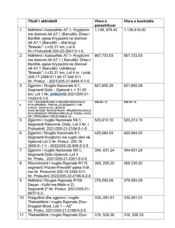 Kjo parti ka publikuar listën e kontratave që pretendojnë se është bërë shkelje ligjore.