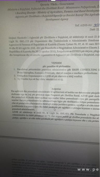Faton Peci, ministër i Bujqësisë i ka “rënë pishman” për grantet që i dha këshilltarit të tij Naim Huruglica dhe vëllaut të deputetetes së VV-së Fitore Pacolli.
