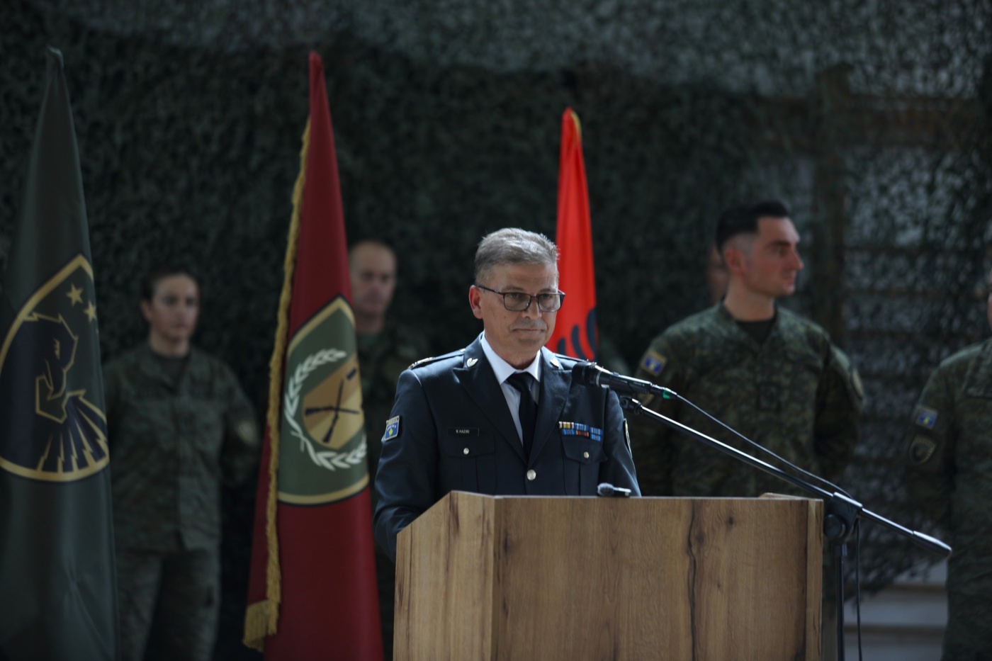 Ndërsa gjeneral brigade Naim Haziri në fjalimin e tij, falënderoi të gjithë të pranishmit në ceremoni dhe gjithë ata që pati rastin të punonte përgjatë 32 viteve shërbim në rrugën për çlirim dhe shtet ndërtim.