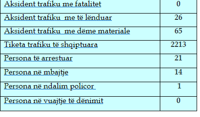 Sipas raportit 24-orësh të policisë, gjatë 24 orëve të fundit janë evidentuar disa aksidente në trafikun rrugor, 26 aksidente kanë qenë me lëndime, ndërsa 65 me dëme materiale.