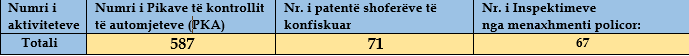 Në 24 orët e fundit janë realizuar 587 pika kontrolli të automjeteve , përderisa për shkelje ligjore në trafik janë konfiskuar 71 patentë shofer.