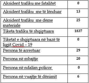Sipas policisë aksidente me të lënduar kanë qenë 13, kurse e dëme materiale 25.