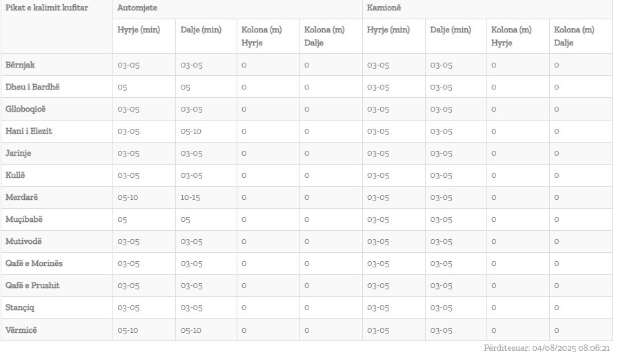 Sipas të dhënave të publikuara në faqen zyrtare, aktualisht pritjet për të hyrë në Kosovë janë të shkurtra.