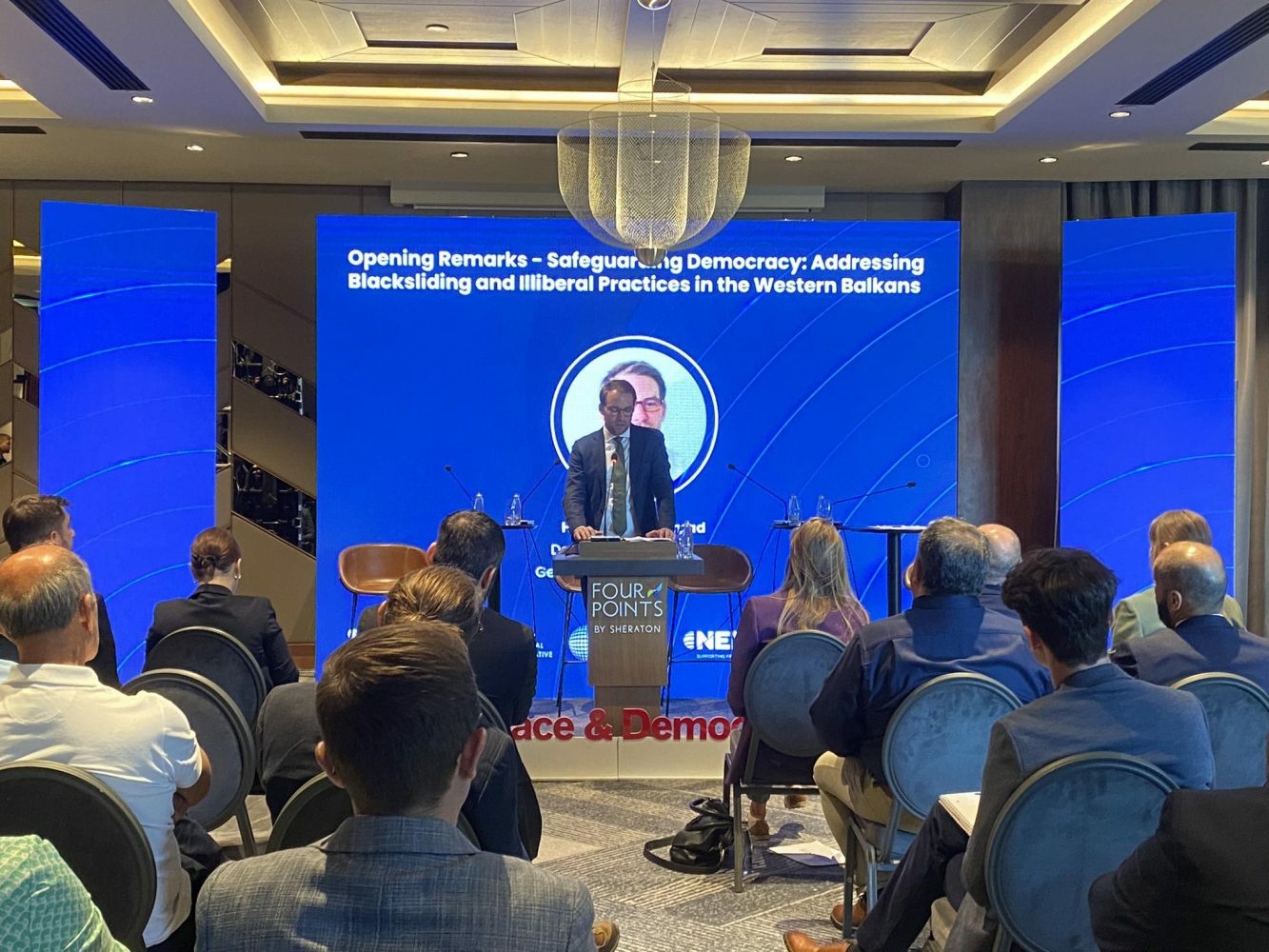 “Në këtë periudhë ku demokracia po sfidohet, jo vetëm në nivelin global, duhet vazhduar të punohet sa më shumë. Kemi shumë punë për të bërë, sepse këto procese kërkojnë angazhim të madh. Kjo konferencë është shumë e rëndësishme pikërisht për këtë”, u shpreh Matthias Conrad.