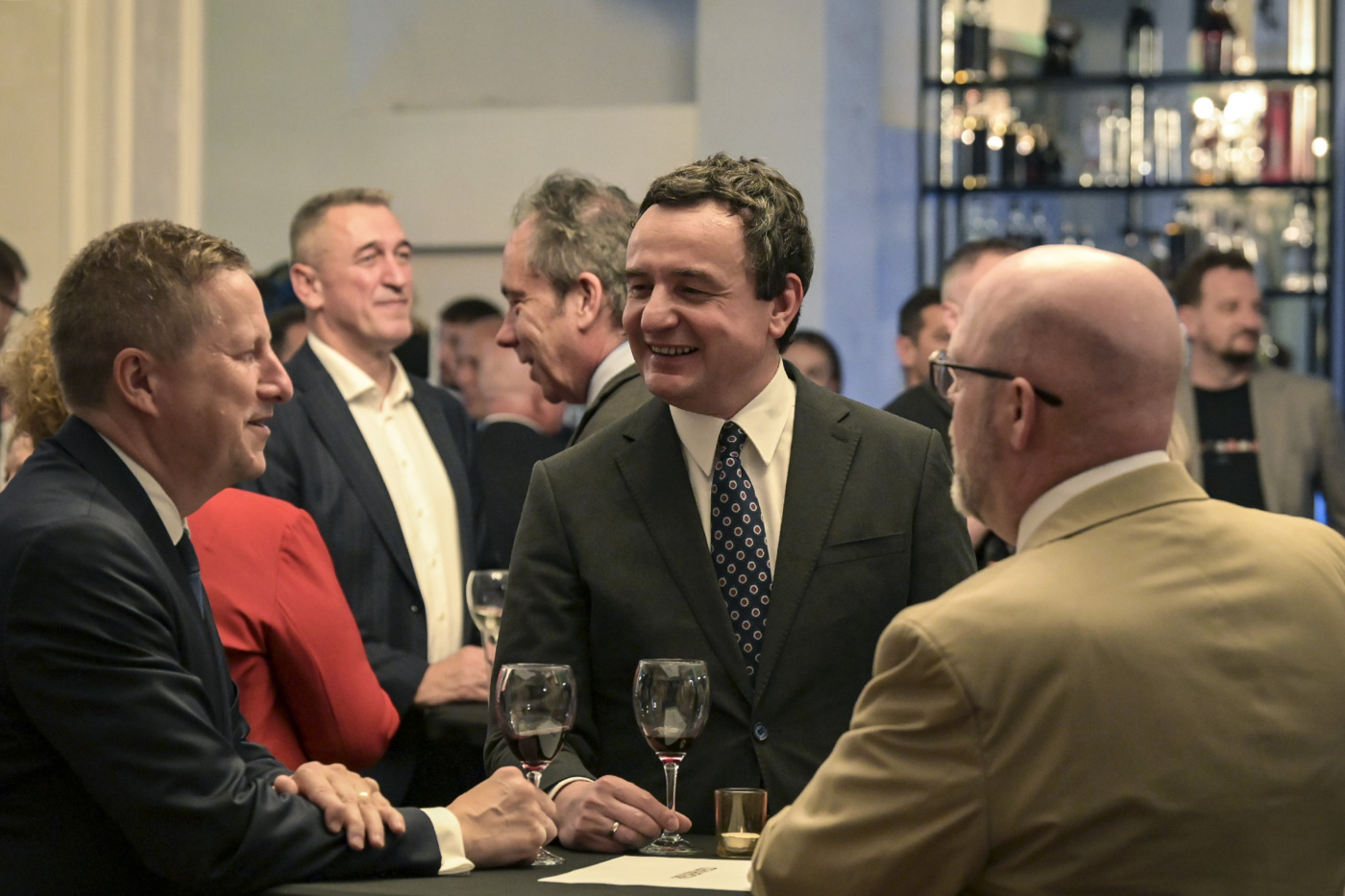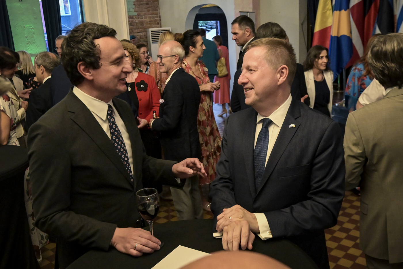 Kryeministri i vendit, Albin Kurti, mori pjesë në pritjen lamtumirëse të organizuar mbrëmjen e sotme nga Zyra e BE-së në Kosovë, me rastin e përfundimit të mandatit të ambasadorit Tomáš Szunyog si shef i zyrës së BE-së.