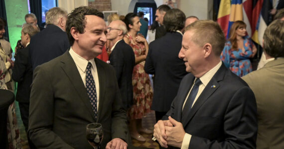 Kryeministri i vendit, Albin Kurti, mori pjesë në pritjen lamtumirëse të organizuar mbrëmjen e sotme nga Zyra e BE-së në Kosovë, me rastin e përfundimit të mandatit të ambasadorit Tomáš Szunyog si shef i zyrës së BE-së. Në fjalën e tij, ai tha se Bashkimi Evropian përfaqëson të ardhmen për Kosovën – një familje kombesh … Continue reading Përfundimi i mandatit të ambasadorit Szunyog, Kurti merr pjesë në pritjen e organizuar nga zyra e BE-së në Kosovë