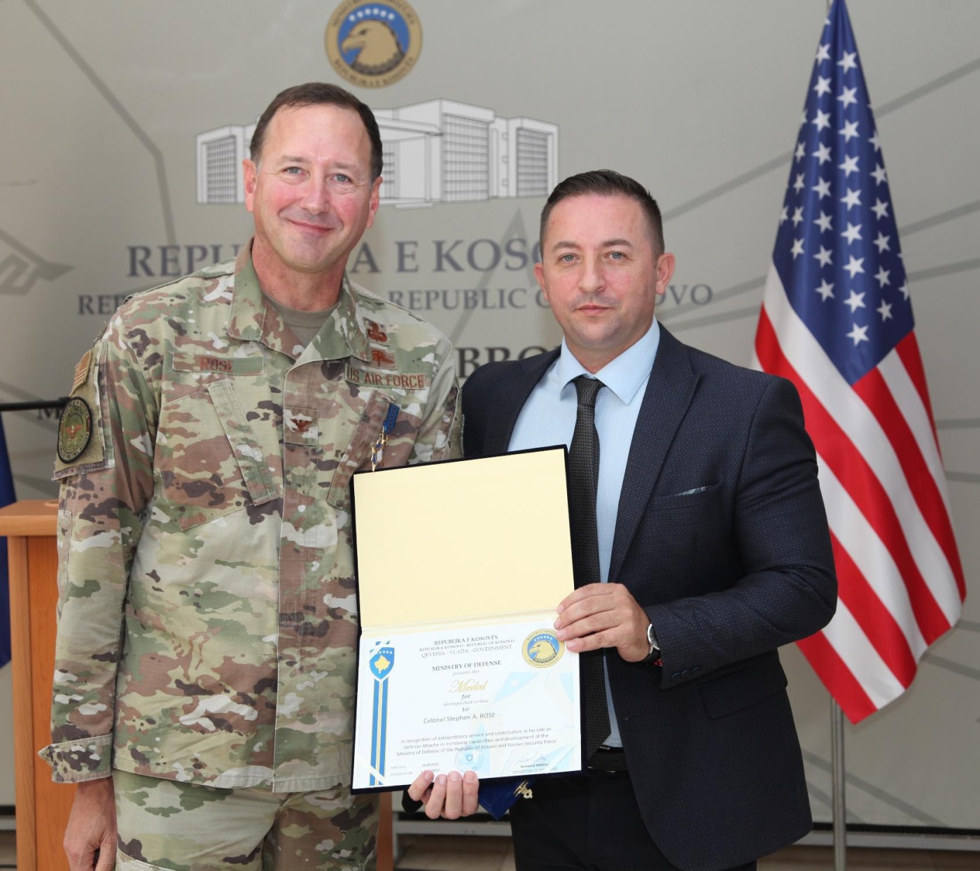 Me këtë rast, në vlerësim të shërbimit dhe kontributit të jashtëzakonshëm në rolin e tij si atashe i mbrojtjes, në rritjen e kapaciteteve të Ministrisë së Mbrojtjes dhe FSK-së, Ministri Mehaj e dekoroi kolonelin Rose me Medaljen për Shërbim të Shquar.
