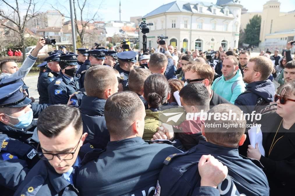 Në fillim të protestës mes protestuesve dhe Policisë së Kosovës pati një përleshje, por nuk pati “shuplaka” sikurse në protestën e kaluar.