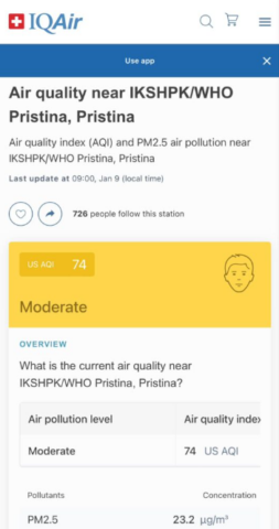 Mirëpo IKSHPK sot ka bërë të ditur se cilësia e ajrit është përmirësuar dhe se kualiteti i ajrit është mesatar./Arbresh.info/