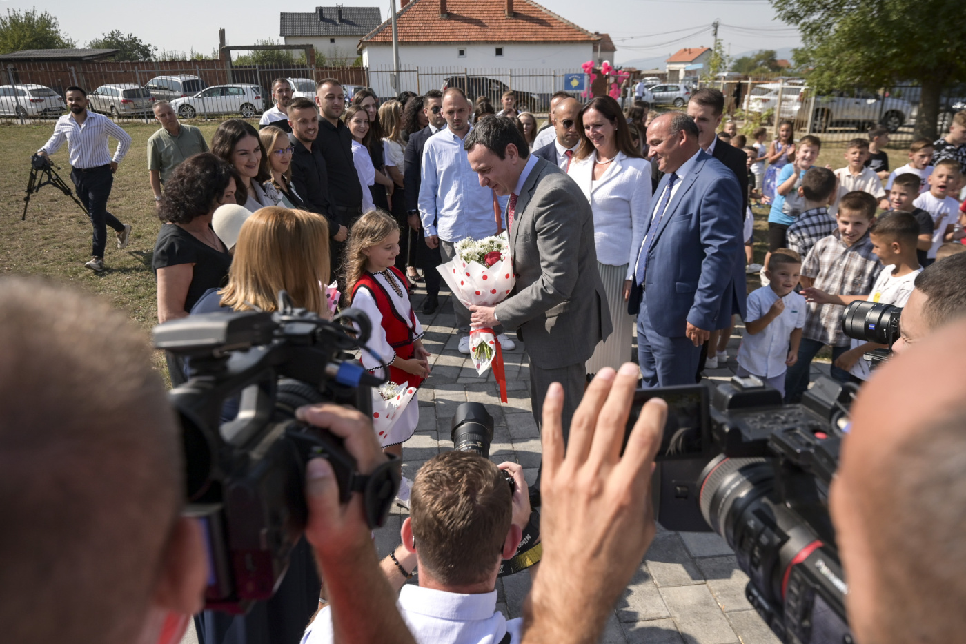 Fillimisht, para banorëve të fshatit Dumosh që kishin ardhur për të festuar përurimin e shkollës së re, kryeministri Kurti u shpreh se muaji shtator është muaji i rifillimit të rrugëtimit të përbashkët, të mësimdhënësve, prindërve, nxënësve dhe institucioneve të shtetit, për një të ardhme që pasqyron vlerat më të mira të kombit tonë, teksa uroi për një vit të mbarë dhe të suksesshëm.