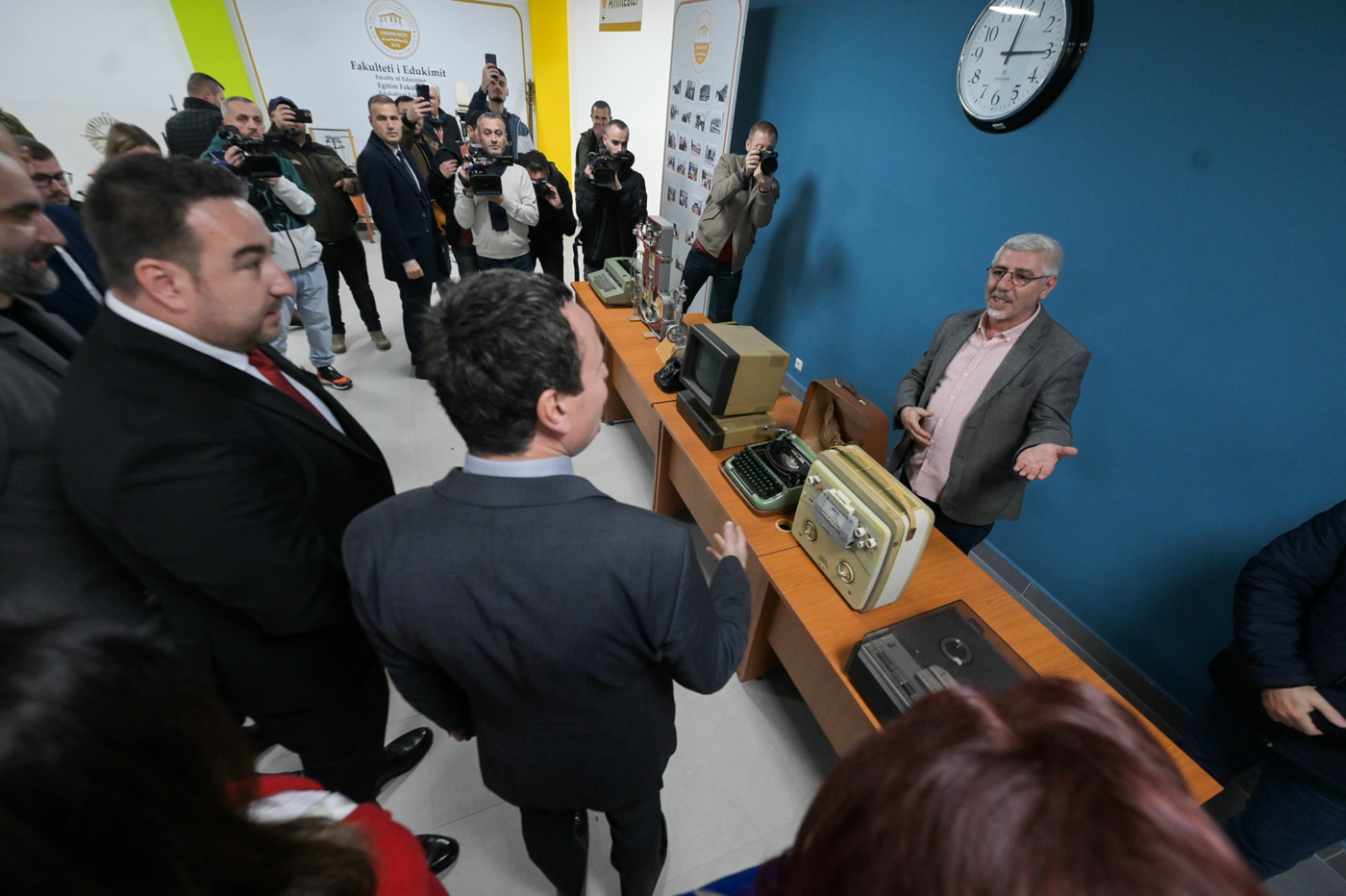 I trashëguar nga dikur Shkolla e Lartë Pedagogjike (ShLP), mësova që në këtë ndërtesë nuk kishte pasur investime që nga vitet ’70 deri më sot, pra gjysmë shekulli mungesë e investimeve. Dhe tash po e inaugurojmë atë të rinovuar, pas një investimi që shkon rreth gjysmë milioni euro. Pas këtyre investimeve, me këtë infrastrukture të re, me rrjetin e ri elektrik, me rrjetin e ri të internetit me fije optike, me sallat e reja të mësimit dhe të profesorëve, dhe me energji të reja, të vazhdueshme në këtë universitet, unë uroj që ky fakultet të vazhdojë dhe ta ngrisë atmosferën të re të punës, studimit e të ligjërimit.