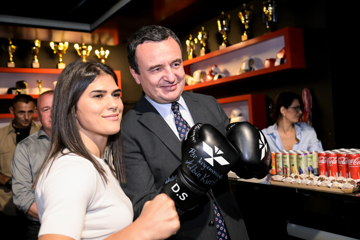 Në përmbyllje të këtij përurimi, Kryeministrit Kurti iu dhurua një dorëz e boksit e cila u nënshkrua nga vetë boksierja.