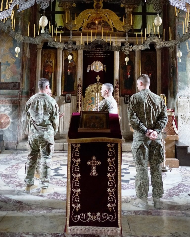 Në njoftimin e KFOR-it thuhet se vizita u bë të dielën, kur koloneli Trotter me Ekipet Mbështetëse Fetare të Task Forcës së Aviacionit.