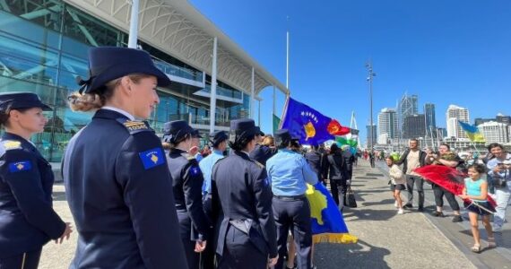 Pjesëtaret e Policisë së Kosovës parakalojnë në Paradën e Kombeve në Zelandën e Re