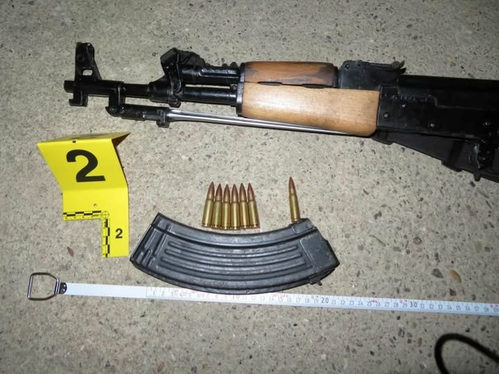 Në cilësinë e provës materiale janë sekuestruar, pushkë automatike me numër serik AK -47, 2 karikatorë, 7 fishekë të kalibrit të panjohur dhe 1 gëzhojë.