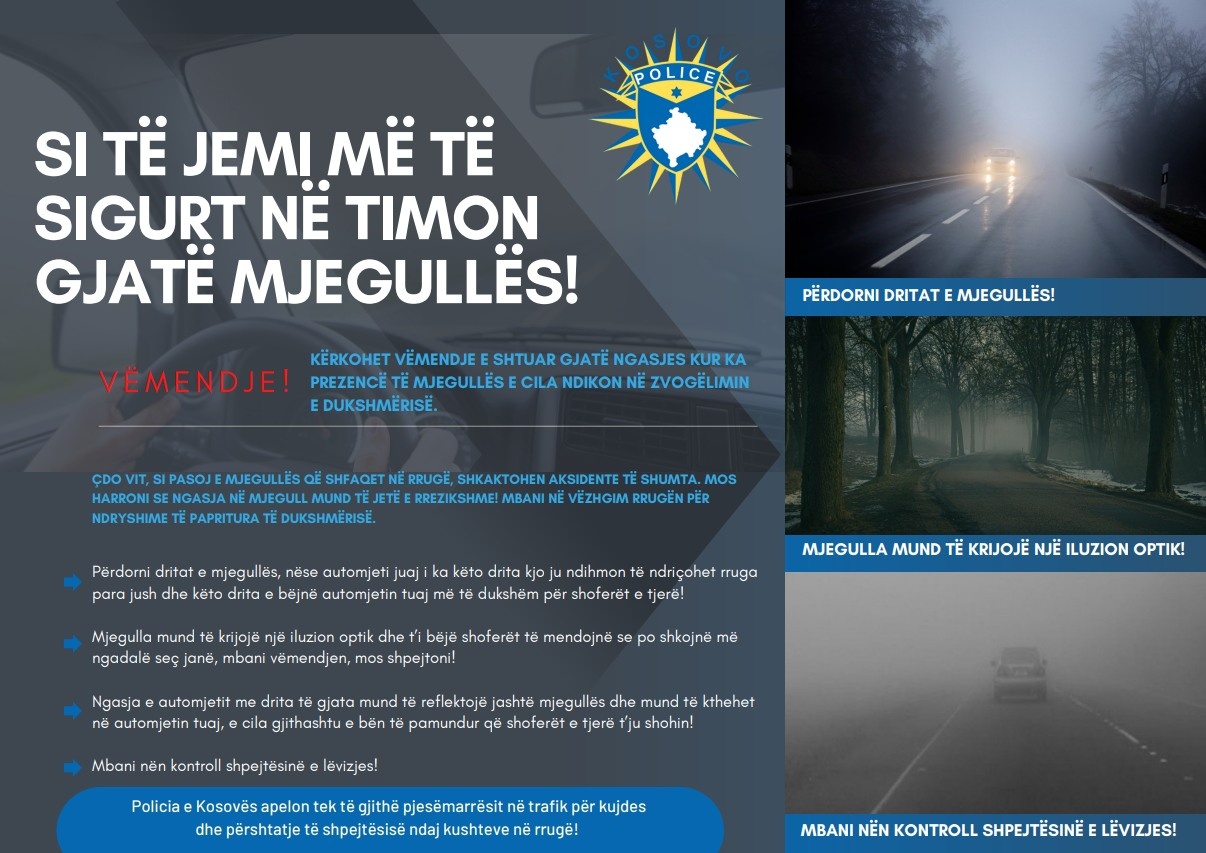 Policia e Kosovës apelon tek qytetarët të kenë më shumë kujdes gjatë ngasjes kur ka prezencë të mjegullës e cila ndikon në zvogëlimin e dukshmërisë.