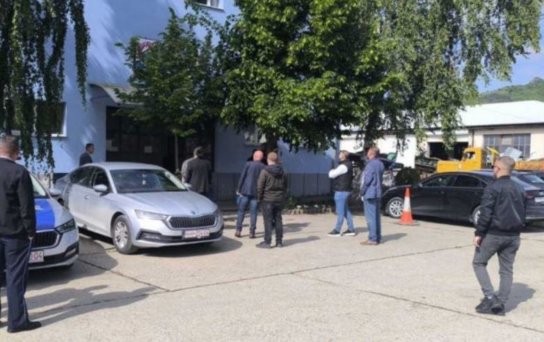 Pjesëtarët e Policisë po asistojnë teksa po inspektohen zyrat e ndërmarrjes ilegale për shërbime komunale “Vodovod Ibar” në Mitrovicën e Veriut, e cila funksionon sipas sistemit serb.