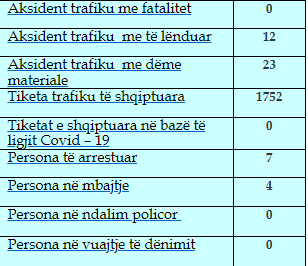 Në raportin 24 orësh, bëhet e ditur se kanë ndodhur 23 aksidente me dëme materiale, ndërsa 12 aksidente me të lënduar.