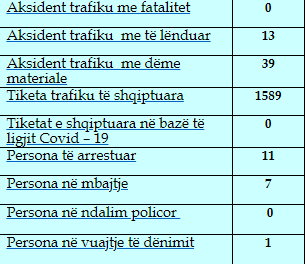 Në raportin 24 orësh, tutje bëhet e ditur se kanë ndodhur 39 aksidente prej tyre 13 janë me të lënduar, shkruan Arbresh.info.